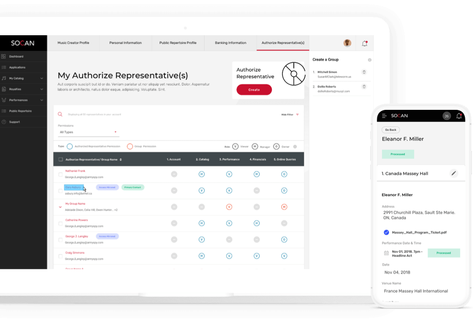 SOCAN's legacy portal was outdated and difficult for members and admin to use. With this project SOCAN wanted to introduce new functionality and technologies to automate a number of processes, increase security and give members more control.